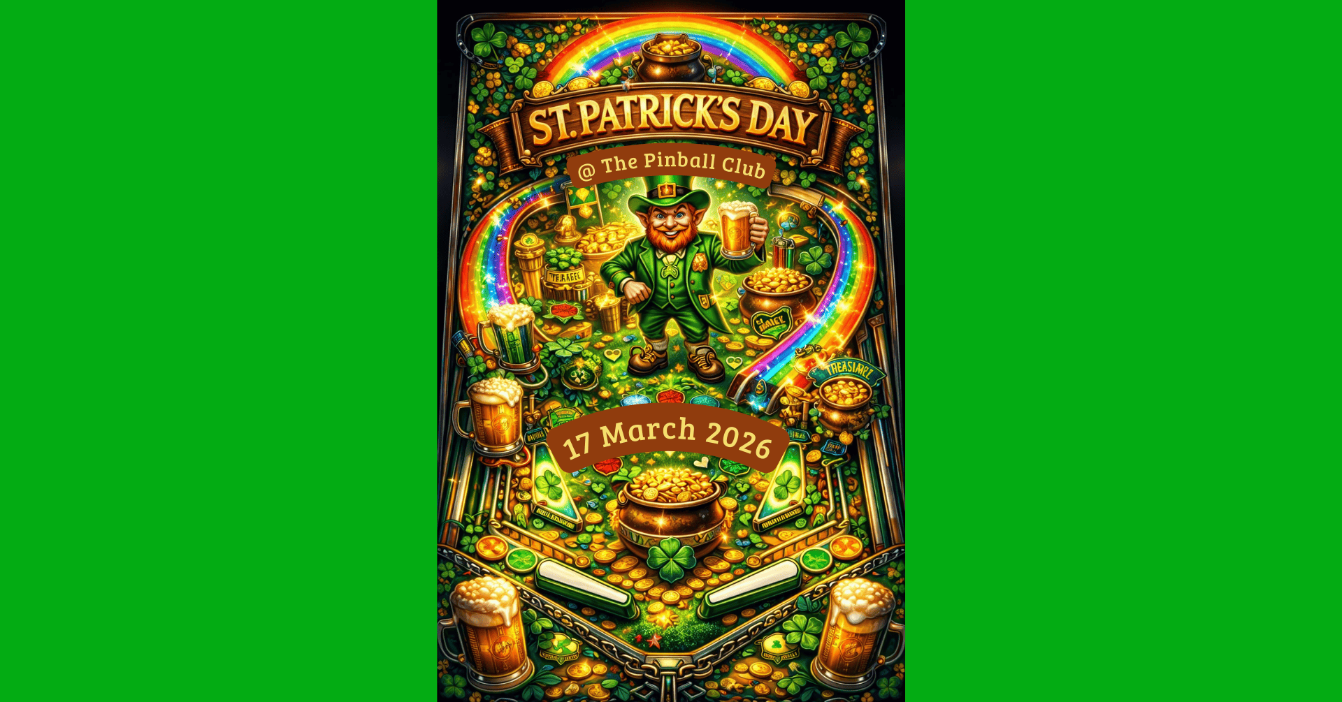 May the luck of the Irish be on your side, as we celebrate together. Go on a musical journey through Ireland as you enjoy your pint of the black stuff, and let the craic be good, when we turn the Pinball Club into the perfect place for a pint of Guinness and pinball!